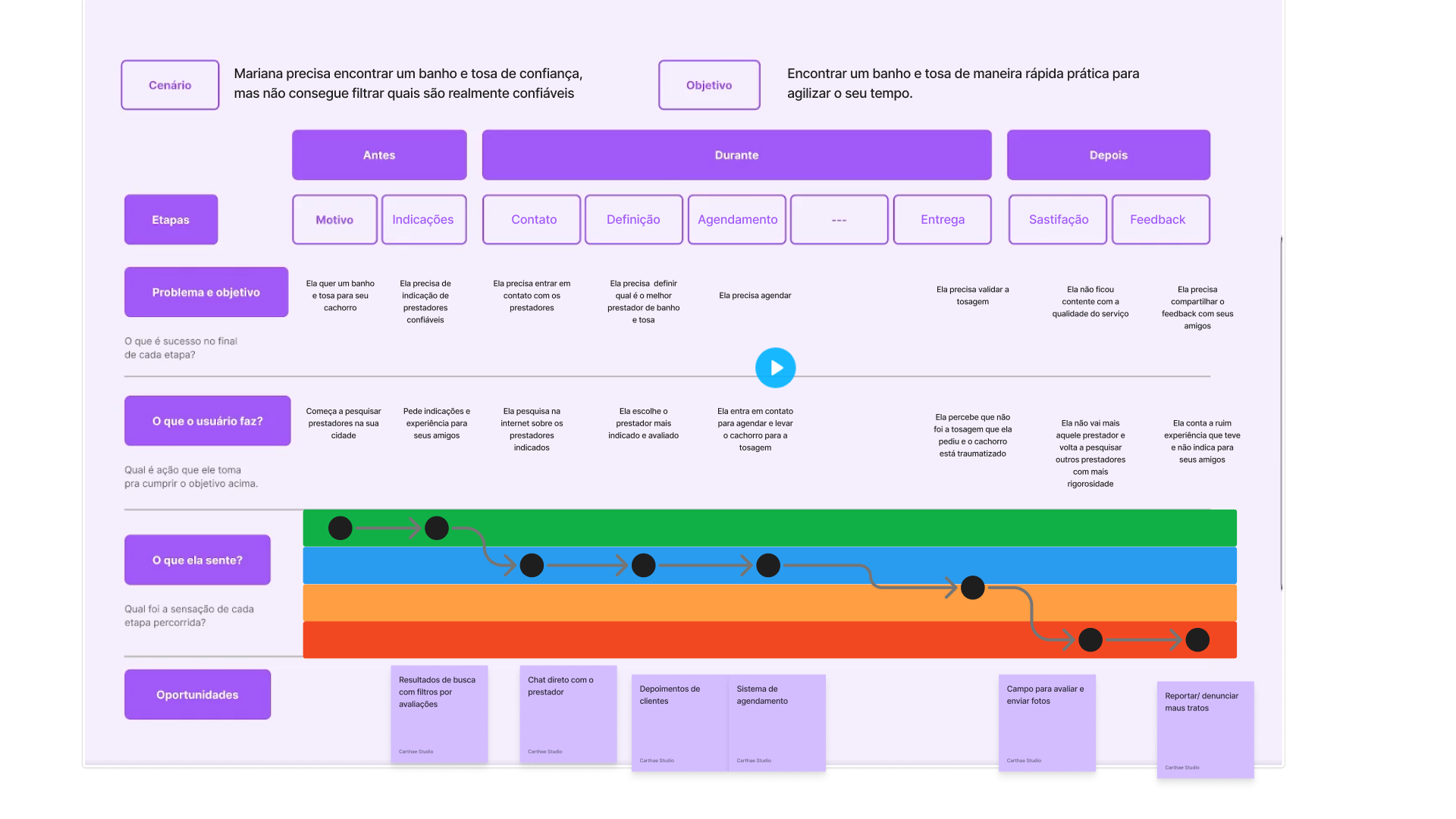 O mapa da jornada foi utilizado para definir pontos que temos oportunidades e gerar novos insights.