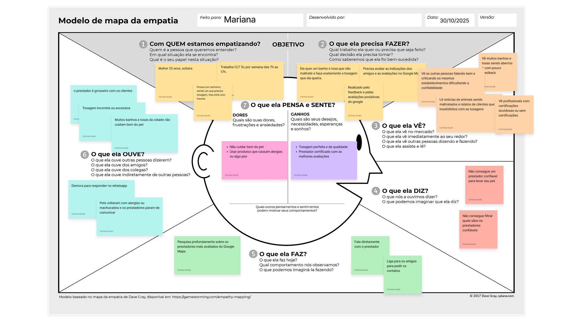 E com isso foi gerado o mapa de empatia para filtrar e organizar as informações relevantes.