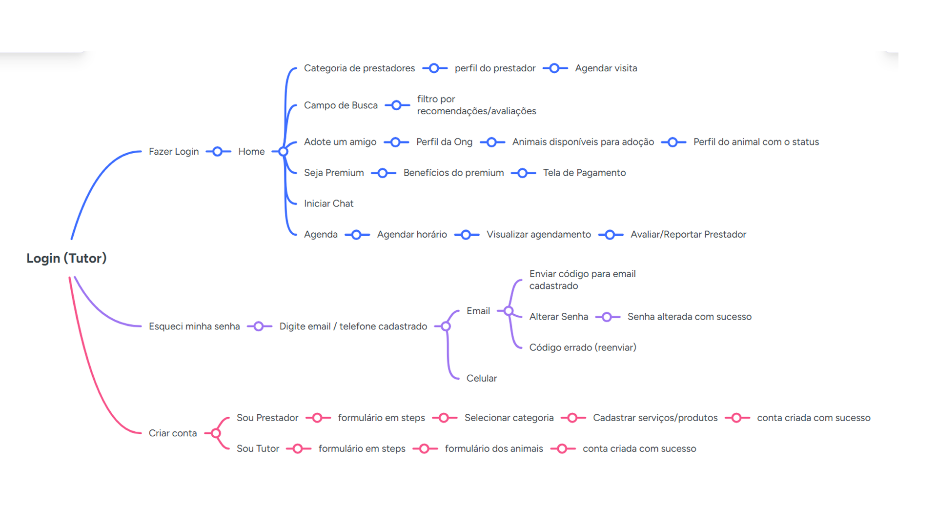 Para o início do desenvolvimento, criei o mapa mental para prédefinir o fluxo do usuário.
