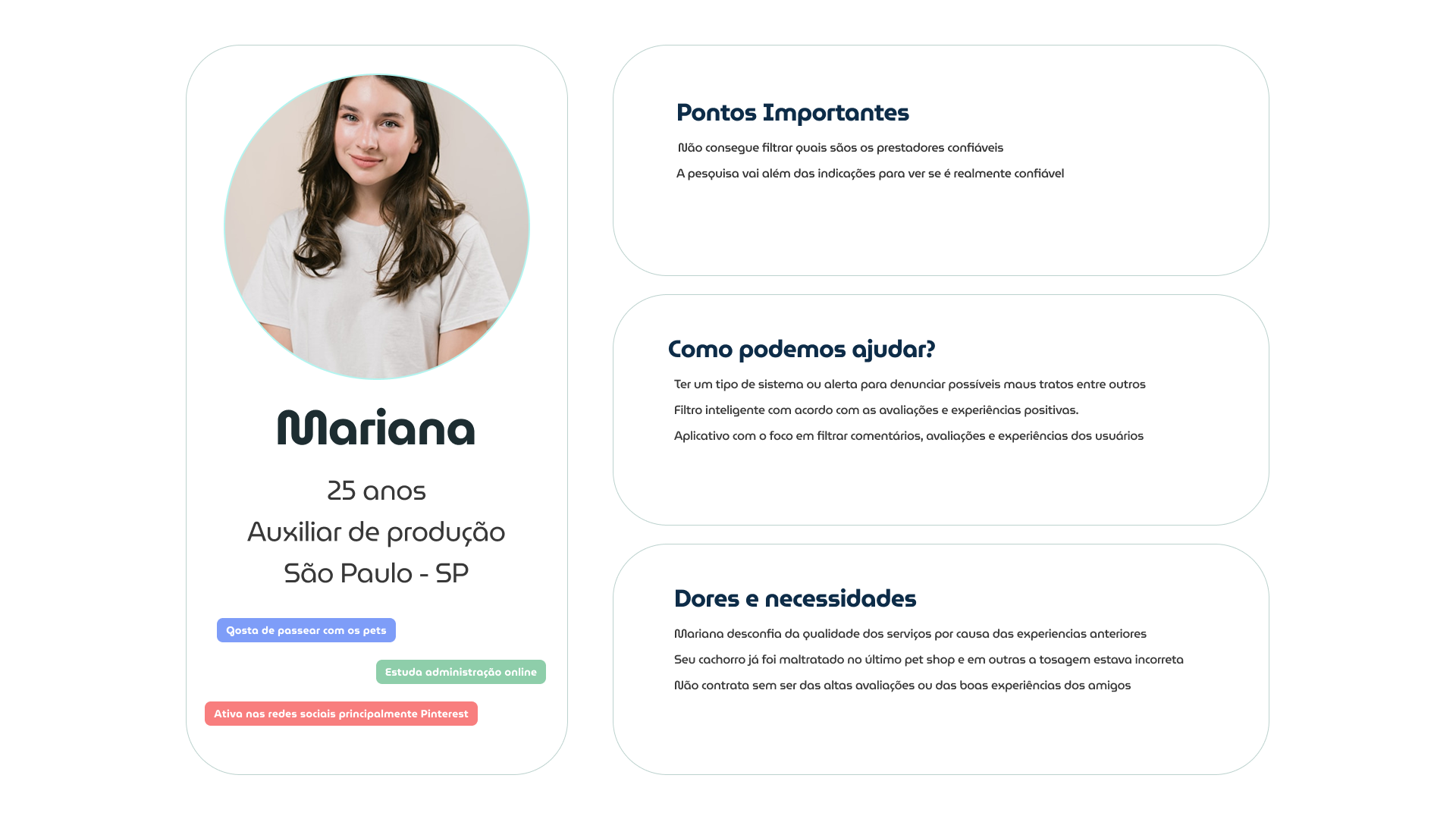 Em persofinicar o público alvo ideal, criei a proto-persona, mostrando quem são, suas dores, necessidades e como podemos ajuda-la.